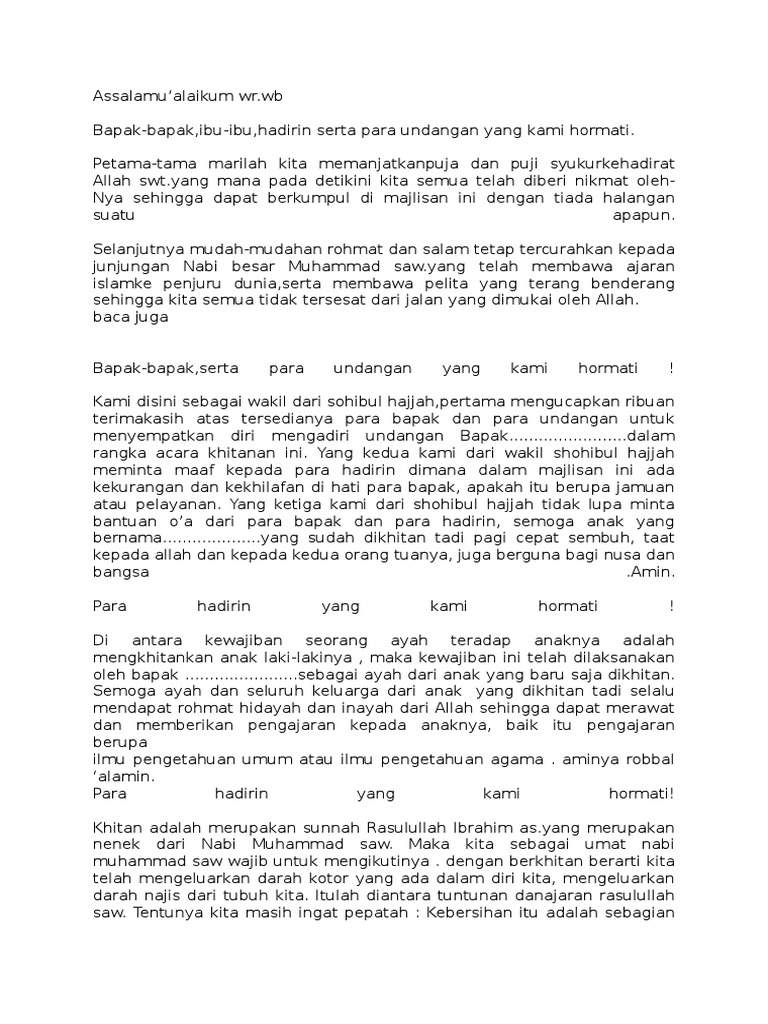 Contoh Teks Naskah Pidato Sambutan Acara Khitanan Sunatan Walimatul Khitan. Ahmad Yani Cicadas dan klinik khitan di Jln. Contoh Teks Ceramah Berbakti Kepada Orang Tua Selamat siang.